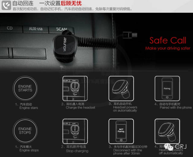 时尚、小巧、精致 Younser智能车载蓝牙耳机
